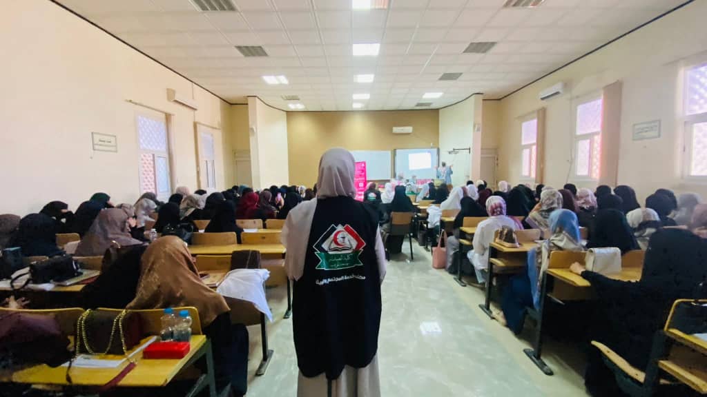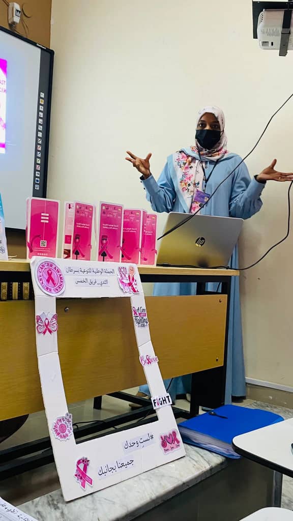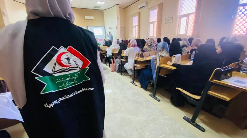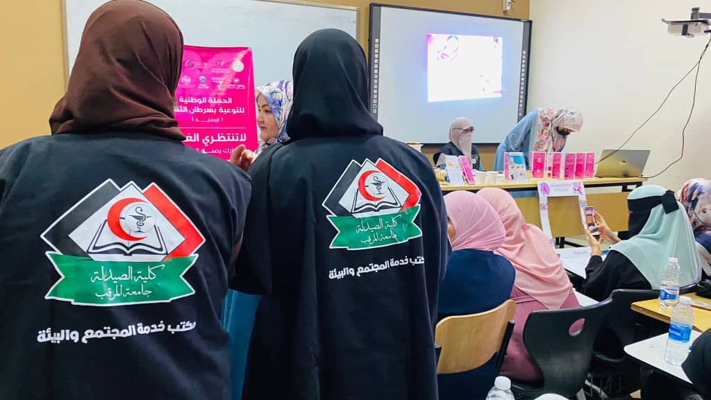 بالتعاون ما بين جامعة المرقب ومنظمة الاتحاد الليبي لمكافحة السرطان (فريق الخمس) وتحت اشراف مركز البحوث والاستشارات والتدريب بالجامعة وقسم البحوث والاستشارات والتدريب بكلية الصيدلة الخمس اقيمت يوم السبت الموافق 2025/20/25م بمدرج الكلية ورشة العمل ضمن الحملة الوطنية للتوعية بسرطان الثدي