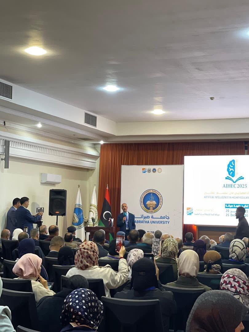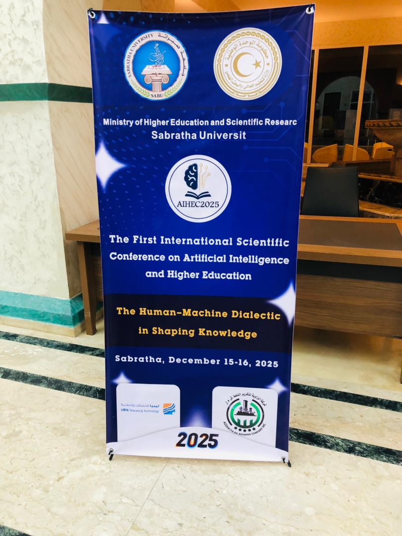في إطار دعم البحث العلمي ومواكبة التطورات الحديثة في مجالي الذكاء الاصطناعي والتعليم العالي، شارك قسم اللغة الإنجليزية بكلية اللغات – جامعة المرقب في فعاليات المؤتمر العلمي الدولي الأول للذكاء الاصطناعي والتعليم العالي، الذي استضافته جامعة صبراتة، بمشاركة نخبة من الأكاديميين والباحثين من مختلف الجامعات.