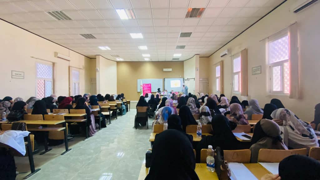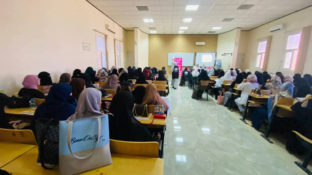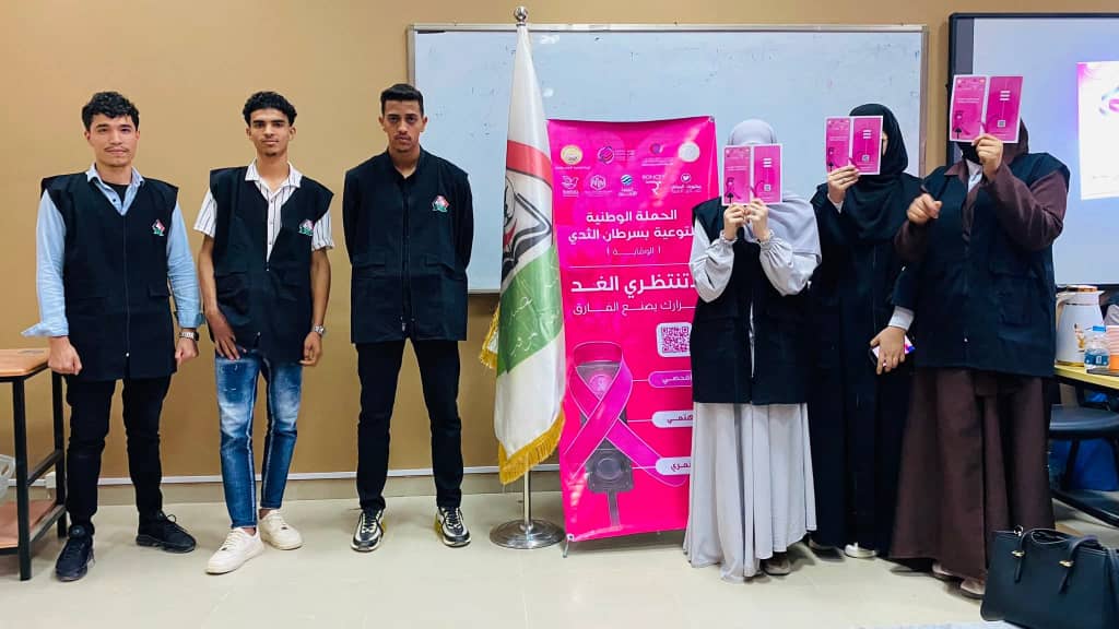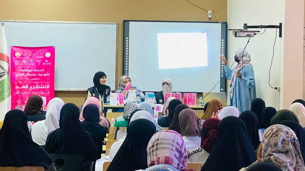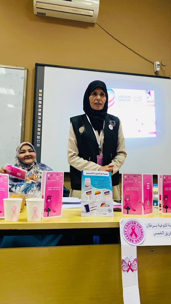 بالتعاون ما بين جامعة المرقب ومنظمة الاتحاد الليبي لمكافحة السرطان (فريق الخمس) وتحت اشراف مركز البحوث والاستشارات والتدريب بالجامعة وقسم البحوث والاستشارات والتدريب بكلية الصيدلة الخمس اقيمت يوم السبت الموافق 2025/20/25م بمدرج الكلية ورشة العمل ضمن الحملة الوطنية للتوعية بسرطان الثدي