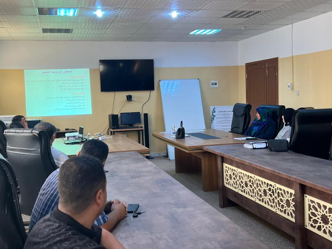 في إطار حرص كلية الصيدلة بجامعة المرقب على الارتقاء بمستوى جودة العملية التعليمية وتحسين مخرجاتها، نظم قسم ضمان الجودة وتقييم الأداء – قسم البحوث والاستشارات بكلية الصيدلة يوم السبت الموافق 01 / 11 / 2025، ورشة عمل لأعضاء هيئة التدريس بعنوان: