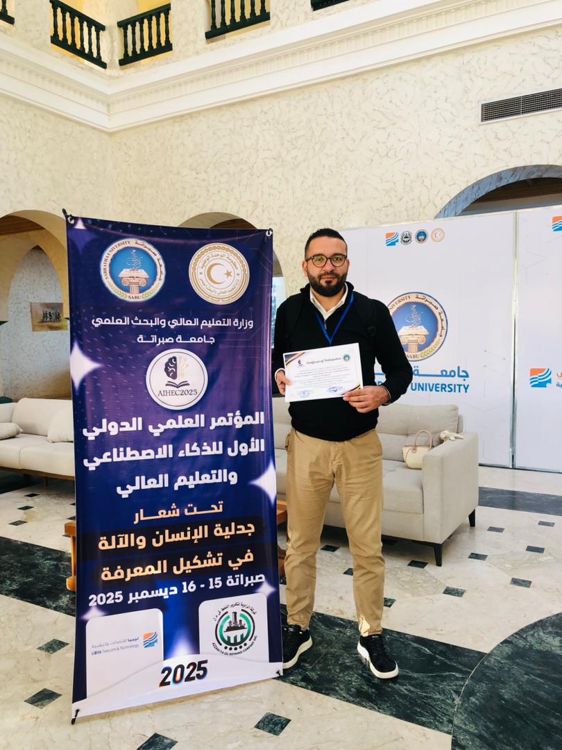 في إطار دعم البحث العلمي ومواكبة التطورات الحديثة في مجالي الذكاء الاصطناعي والتعليم العالي، شارك قسم اللغة الإنجليزية بكلية اللغات – جامعة المرقب في فعاليات المؤتمر العلمي الدولي الأول للذكاء الاصطناعي والتعليم العالي، الذي استضافته جامعة صبراتة، بمشاركة نخبة من الأكاديميين والباحثين من مختلف الجامعات.