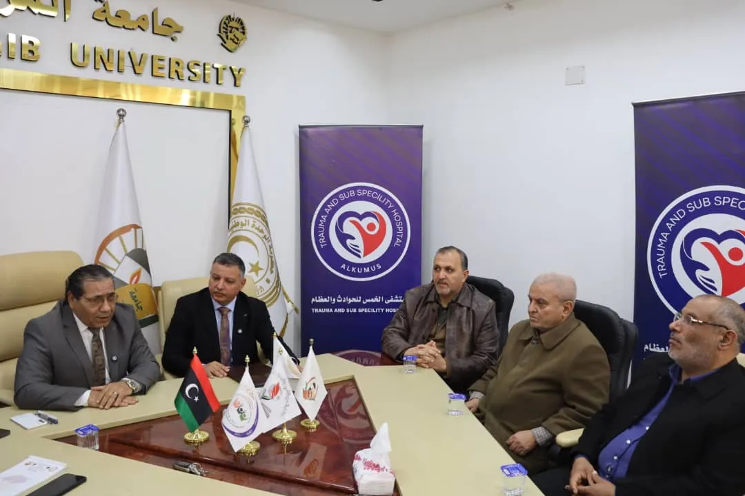 جرت صباح اليوم السبت الموافق 08\02\2025م. بمقر الإدارة العامة مراسم توقيع اتفاقية تعاون مشترك بين جامعة المرقب ويمثلها أ.د امحمد انويجي غميض . ومستشفى الخمس للحوادث ويمثله السيد د . الزروق غريبة .بحضور السادة وكيل الجامعة للشؤون العلمية د . حميدة محمد اكتيبي. ومدير مكتب العمل والتأهيل الخمس أ. عثمان البكاي ومدير مكتب الخدمات الصحية الخمس أ. أحمد سينان وحضور السادة عمداء الكليات الطبية بالجامعة وعدد من مدراء المكاتب من الجانبين .