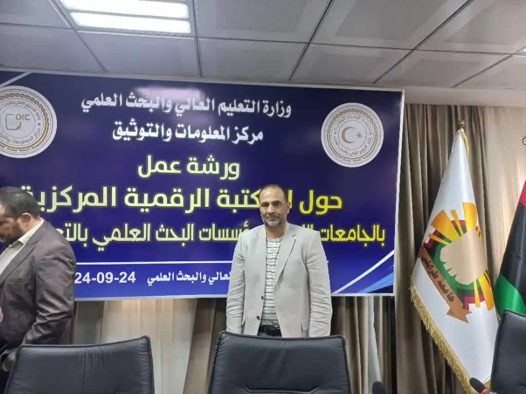 بدعوة من مدير مركز التوثيق والمعلومات بوزارة التعليم العالي والبحث العلمي، أقيمت صباح يوم الثلاثاء 24 سبتمبر 2024م ورشة عمل حول المكتبة الرقمية في قاعة الاجتماعات بالوزارة، بحضور مدراء الإدارات العامة للمكتبات والنشر بالجامعات الليبية. افتتح الجلسة معالي نائب رئيس المجلس الرئاسي السيد عبد الله اللافي، ومعالي وزير التعليم العالي والبحث العلمي الدكتور عمران القيب، والدكتور امحمد انويجي رئيس جامعة المرقب، والدكتور أبو بكر عيسى مدير مركز التوثيق والمعلومات بالوزارة، بالإضافة إلى مدير الشركة القابضة للاتصالات.